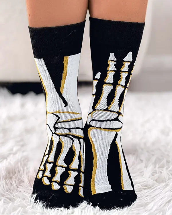 1Pair Halloween Funny Skeleton Hand Foot Print Socks
