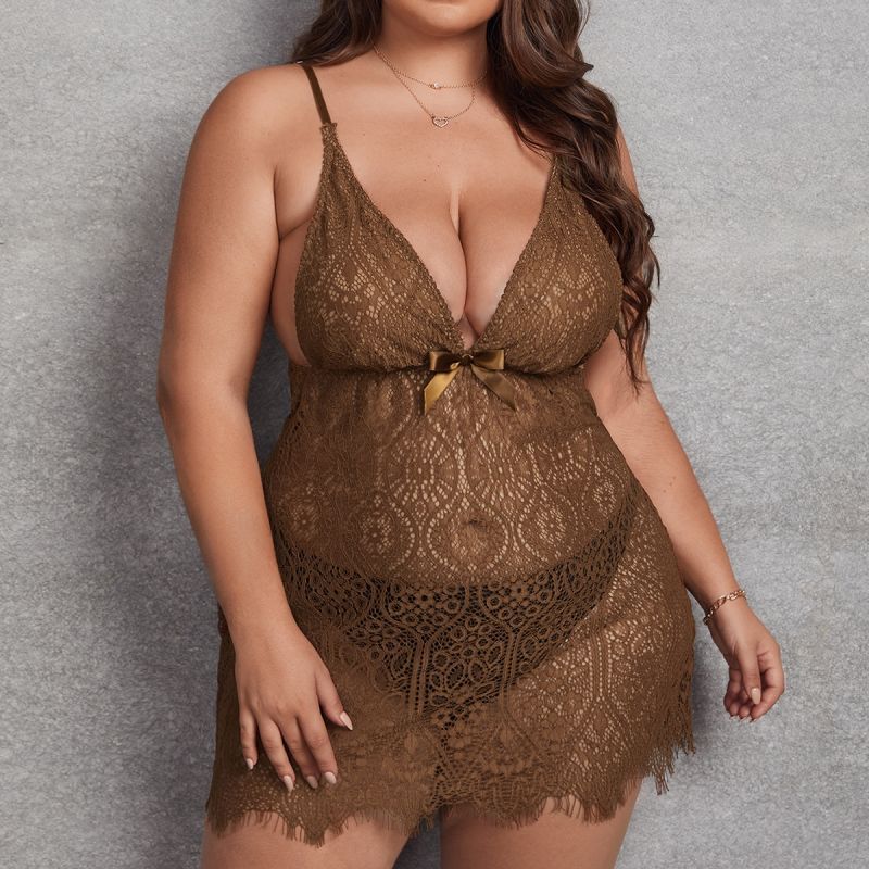Plus Size Lace Beautiful Back Sexy Temptation Women's Transparent Mesh Suspender Nightgown