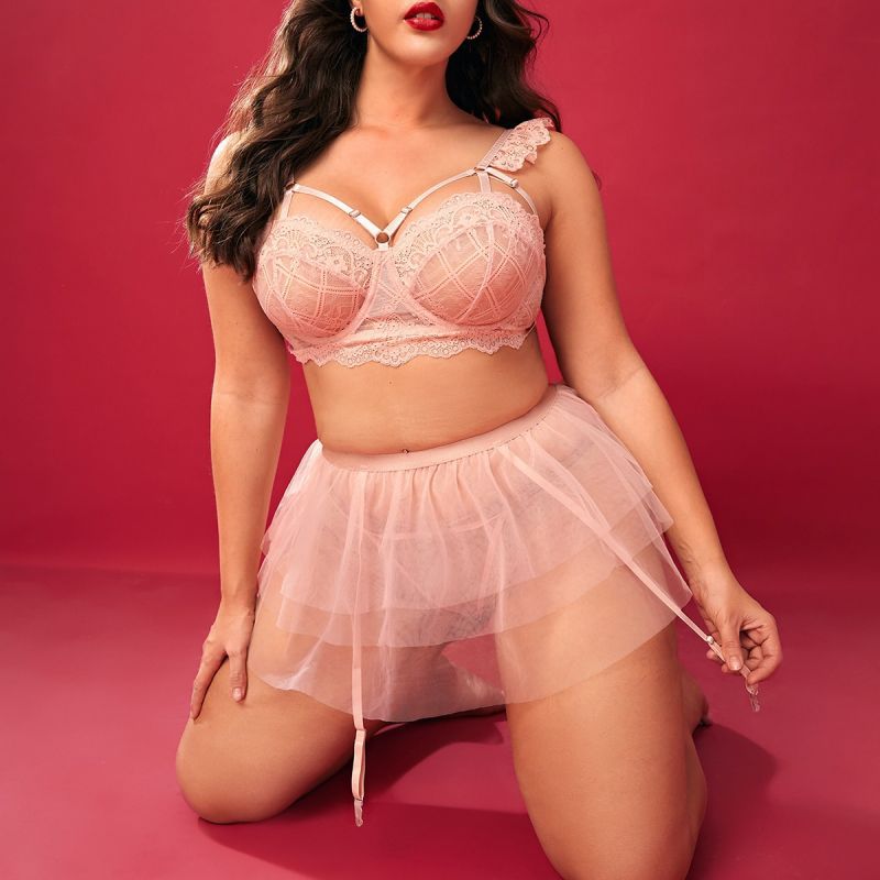 Plus Size Sexy Pink Bra And Short Skirt Sexy Suit